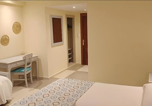 Die 34 Zimmer gliedern sich in 10 Einzel- und 24 Doppelzimmer, ergänzt von Familienzimmern. Klimaanlage und Heizung sorgen für konstante Temperaturen, Fliesenböden und klare Linien prägen den Eindruck. Ihr nutzt WiFi, Fernseher, Telefon und Safe, das Bad bietet Dusche oder Badewanne sowie Haartrockner.