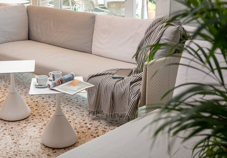 Die Terrassenflächen schaffen Abstand zum Trubel, ohne die Nähe zu Strand und Zentrum aufzugeben. So bleibt Ihr beweglich und habt doch einen klaren Ort zum Runterkommen – reduziert, funktional und mit verlässlicher Struktur.