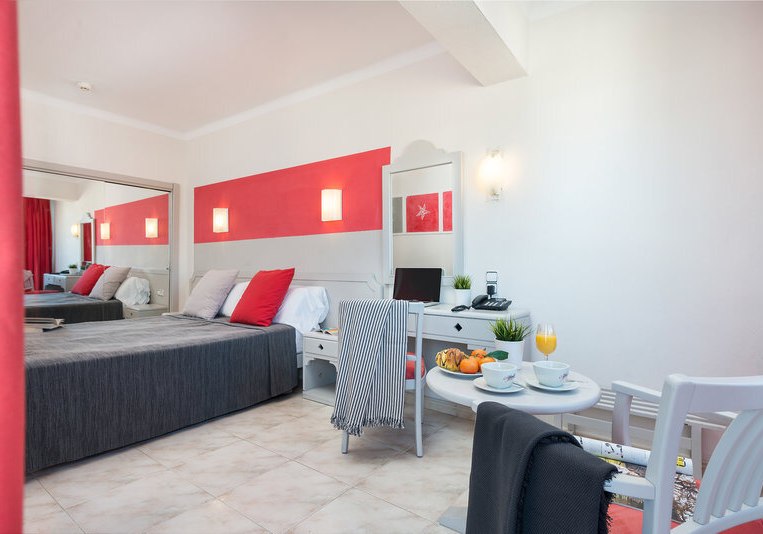 Ihr wohnt in kompakten Zimmern mit 17 bis 19 Quadratmetern, gefliestem Boden und zentraler Klimaanlage/Heizung. WLAN ist kostenfrei, Sat-TV und Safe (gegen Gebühr) ergänzen die Ausstattung. Viele Einheiten bieten Twinbetten; Schlafsofa und kostenloses Babybett schaffen flexible Schlafsituationen.