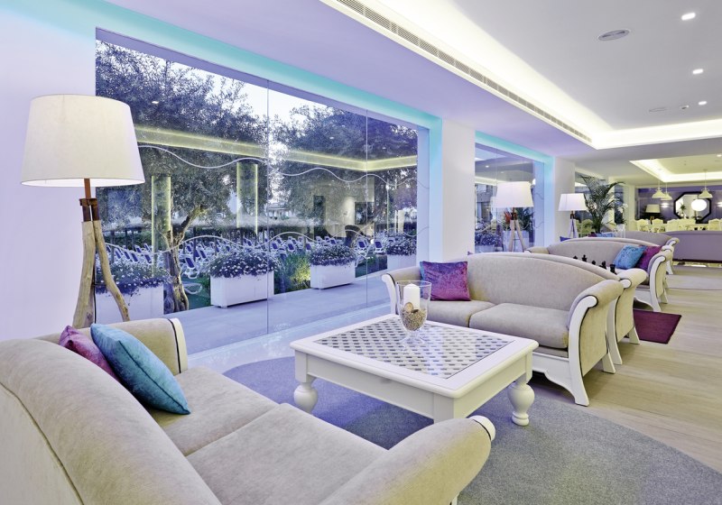 Die öffentlichen Bereiche wirken geordnet und zweckmäßig: Lobby mit Rezeption, Sitzecken und drei Liften, dazu WLAN im gesamten Hotel. Abends zieht es Euch zu Shows oder Livemusik, tagsüber nutzt Ihr den kleinen Fitnessraum, Tischtennis oder den Fahrradverleih. Der Blick in den Garten begleitet Euch beim Essen – im Buffetrestaurant mit Show-Cooking und die Lounge-Bar lockt mit Außenterrasse.