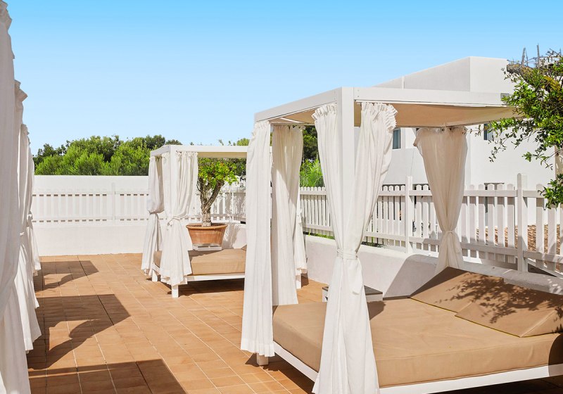 - Poolbereich: Außenpool mit Terrasse, Liegen, Schirmen und Pooltüchern.