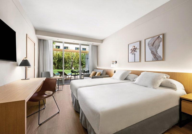 Im Protur Sa Coma Playa Hotel & Spa wohnt Ihr gegenüber dem Naturgebiet Punta de n’Amer, nur wenige Schritte vom feinen Sand entfernt. 2023 renoviert, wirkt das Haus zugleich frisch und vertraut. Zwei Außenpools setzen den Ton: ein ruhiger Erwachsenenpool für ungestörte Bahnen und ein Familienpool mit leichtem Trubel. Für Kinder wartet der Paradise Park mit Spielbereichen und zwei separaten Kinderbecken – Ihr behaltet alles im Blick und plant den Tag entspannt zwischen Wasser, Garten und kurzer Strecke zum Strand.
