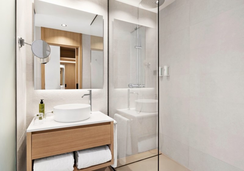 Select Zimmer bieten rund 31 Quadratmeter und kommen mit Bademantel und Slipper sowie Terrasse. In den Suiten (ca. 38 Quadratmeter) trennt Ihr Schlafzimmer und Wohnbereich, zwei TVs erleichtern den späten Film, während jemand schon ruht. Details wie Schallisolation, Heizung, Schreibtisch oder Schlafsofa unterstreichen den Komfort. Für Familien oder längere Aufenthalte entsteht so ein klar strukturierter Rückzugsort – mit frischer Anmutung dank der Renovierung 2023.