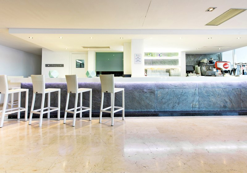 Das Hotel ist klar strukturiert: Lobby mit 24-Stunden-Rezeption, drei Aufzüge, gratis WLAN und serviceorientierte Bereiche wie Gepäckaufbewahrung. Draußen warten zwei Außenpools, breite Sonnenterrassen mit Liegen, Schirmen und optionalen Balibetten. Ein Fitnessraum ergänzt die Infrastruktur effizient.