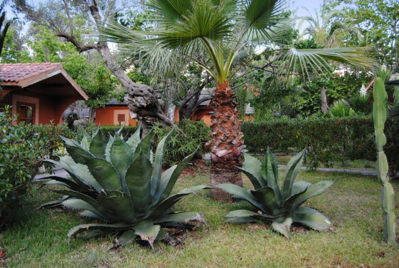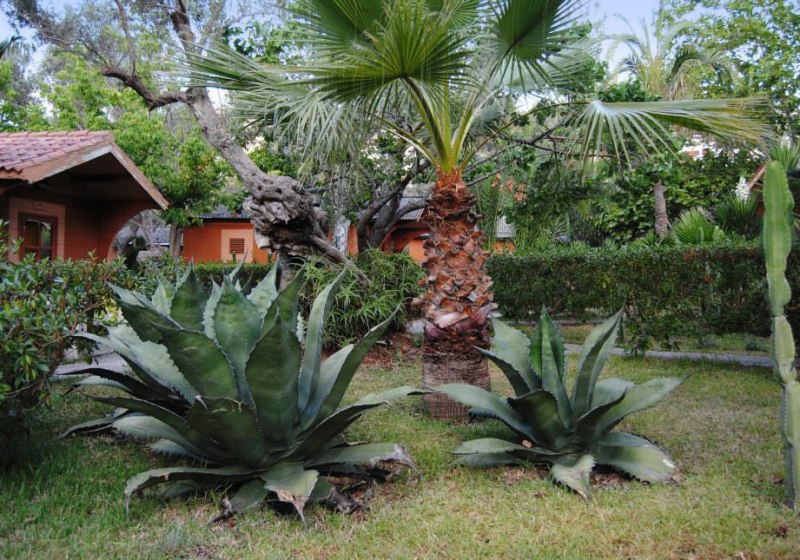 Die Anlage wirkt übersichtlich und grün: Gartenbereiche, Außenmöbel und eine Sonnenterrasse gruppieren sich rund um den Pool. Die Rezeption mit deutsch- und englischsprachigem Personal, Tour-Desk und Check-in/out-Service halten Wege kurz und Abläufe verständlich. WLAN steht in den öffentlichen Bereichen bereit.