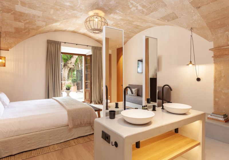 Son Julia Country House verbindet ein restauriertes Herrenhaus aus dem 15. Jahrhundert mit zeitgemäßem Komfort der Baujahrs-Generation 2006. Ihr wohnt in ländlicher Ruhe bei Llucmajor, umgeben von Gartenanlage, Innenhof und Sonnenterrassen. Zwei Pools, einer exklusiv für Erwachsene, strukturieren entspannte Tage zwischen Wasser, Grün und schattigen Plätzen.