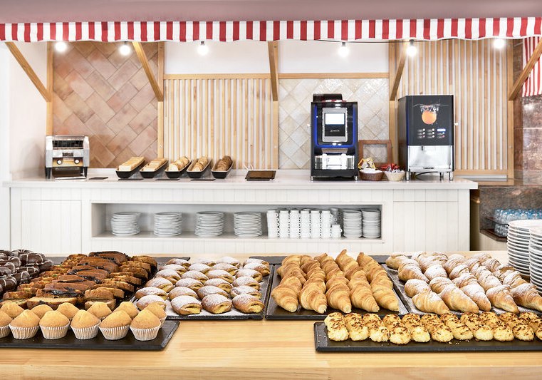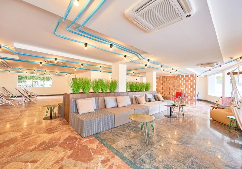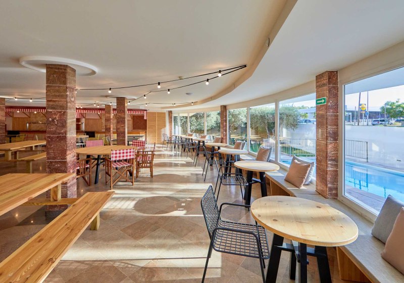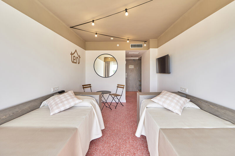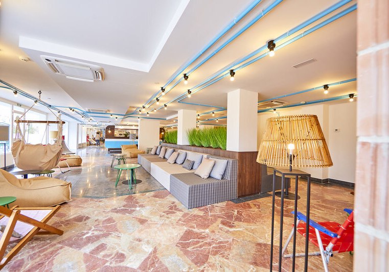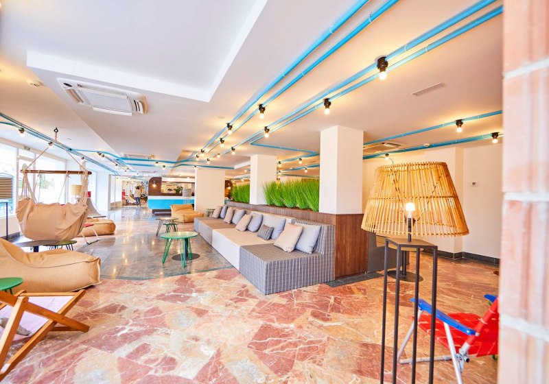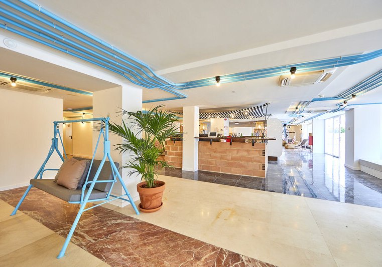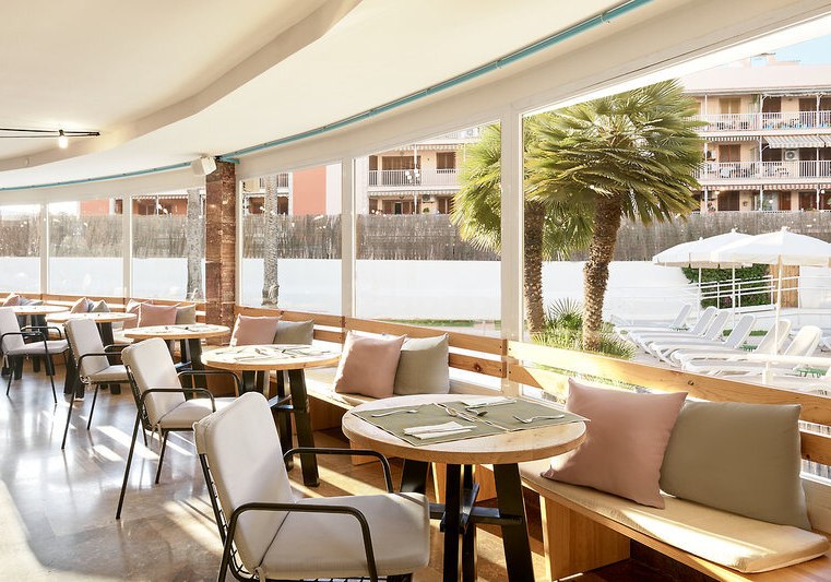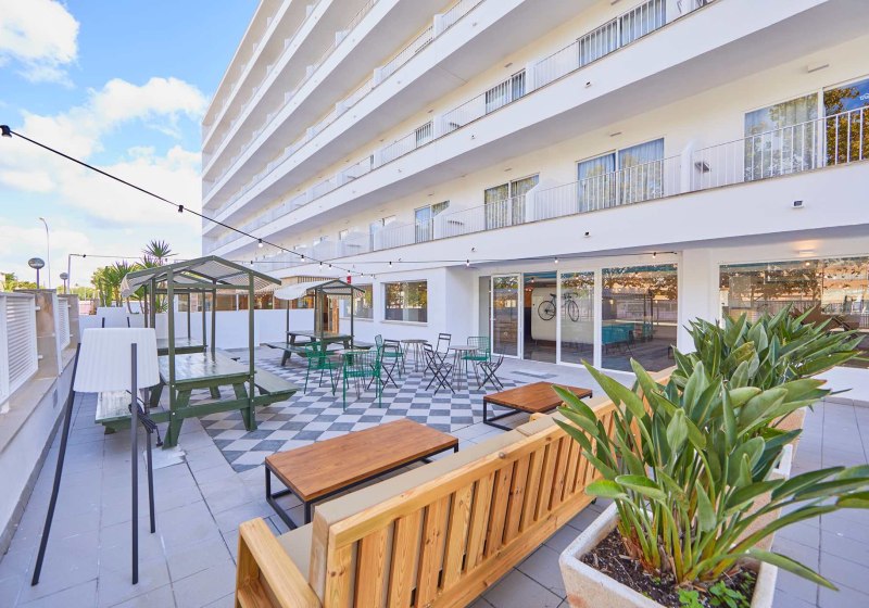 Die Öffentlichkeitbereiche sind angenehm kompakt und bieten Euch zügige Abläufe: 24‑h‑Rezeption, Lifte, Bar und Restaurant. Auf der Sonnenterrasse nehmt Ihr Euch Zeit für Pausen zwischen Strandgängen und kleinen Entdeckungen in Arenal. Der Stil wirkt unaufgeregt und funktional, genau richtig für aktive Strandtage mit unkomplizierter Rückzugsmöglichkeit.