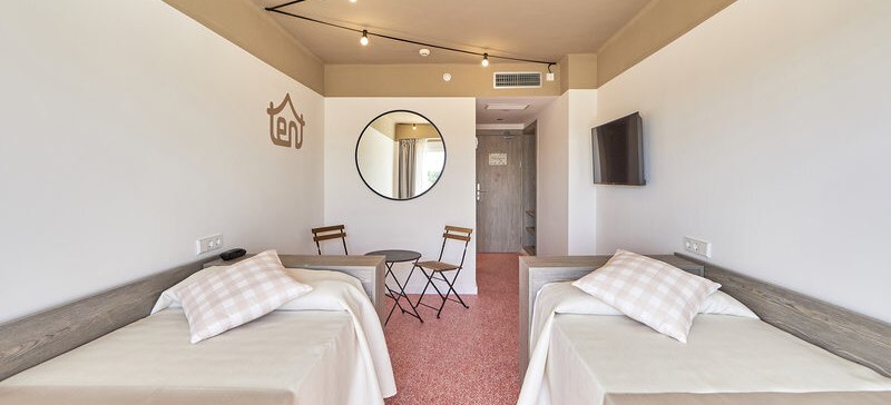 Im Tent Playa De Palma wohnt Ihr mitten an der Playa de Palma, Höhe Balneario 3, mit einem klaren, modernen Look nach der Renovierung 2020. Die Atmosphäre bleibt entspannt: zwei Pools, viel Tageslicht, kurze Wege und ein lässiger Rhythmus zwischen Strand, Terrasse und Lobby. WLAN ist im gesamten Haus gratis, sodass Ihr Planung und Eindrücke jederzeit teilt.