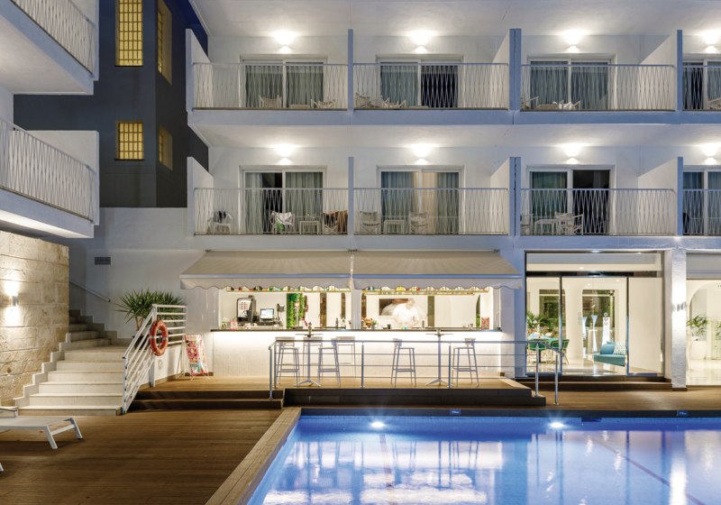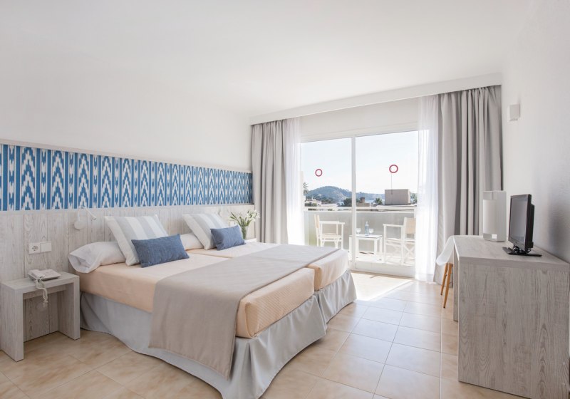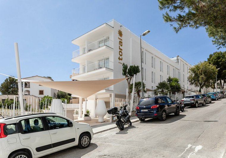 Im Tora wohnt Ihr in zwei Gebäuden mit je drei Etagen, komplementär zueinander angeordnet. Die Hanglage an einer Nebenstraße in Paguera prägt das Gefühl kurzer Wege: Boulevard, Strand und Hotelbereiche liegen nah beieinander. 81 Zimmer halten den Rahmen überschaubar, Service und Abläufe wirken dadurch angenehm fokussiert.