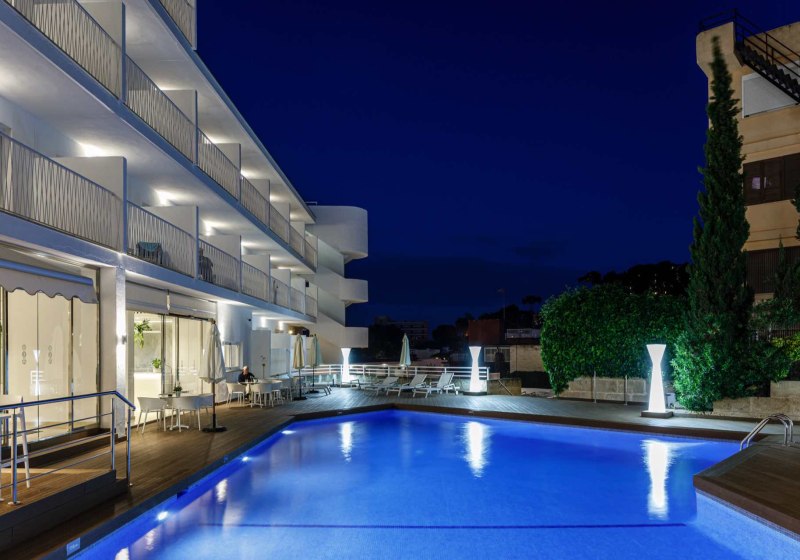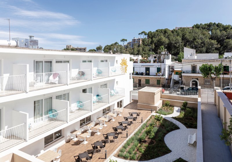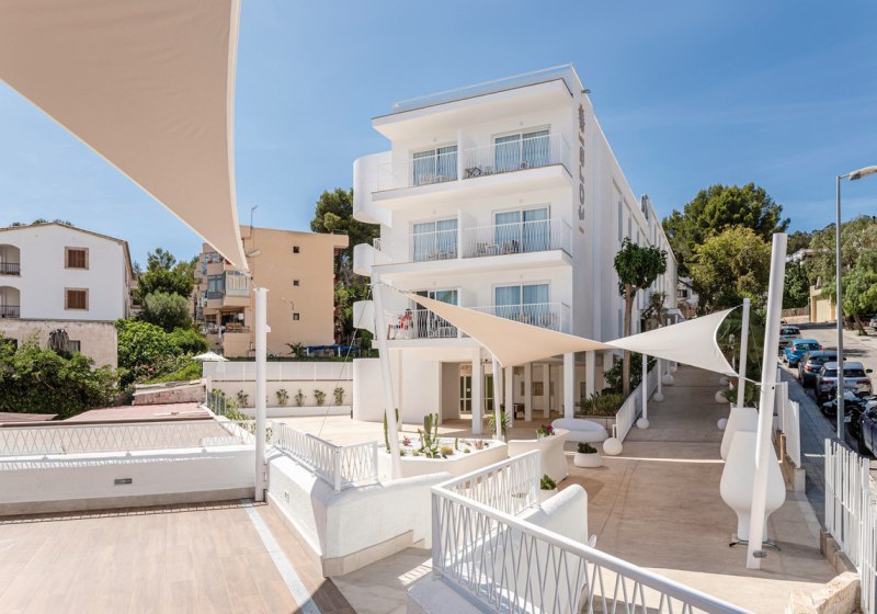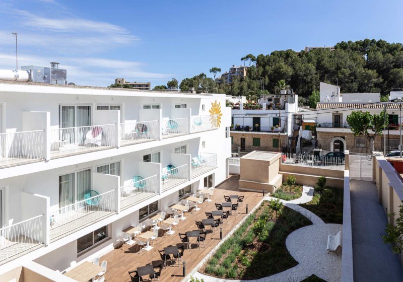 Das Hotel liegt in Hanglage an einer Nebenstraße in Paguera, nur wenige Schritte vom Boulevard Paguera entfernt. Zum Strand sind es etwa 200 Meter, ideal für spontane Badegänge oder abendliche Strandspaziergänge. Eine ÖPNV-Anbindung befindet sich in etwa 100 Metern Entfernung, die Lage wirkt dadurch angenehm angebunden.