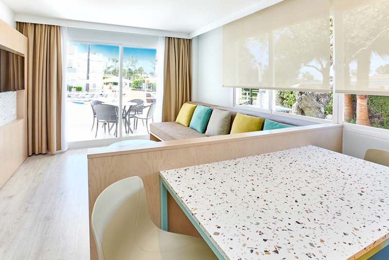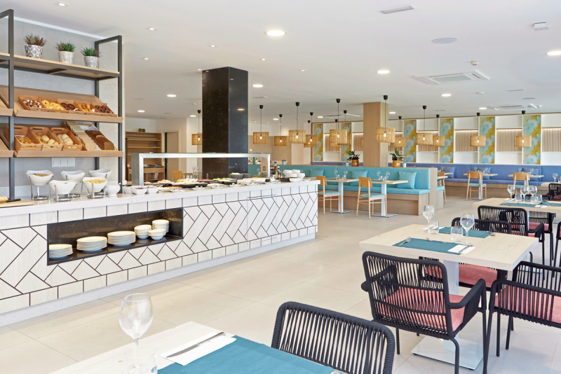 Je nach Präferenz können die Gäste das Universal Aparthotel Elisa mit Frühstück, Halbpension oder Vollpension buchen. Das hoteleigene Buffetrestaurant serviert eine breite Palette an Gerichten, einschließlich glutenfreier, laktosefreier und veganer Kost auf Anfrage. Die Poolbar ist als Snackbar nutzbar und bietet eine Palette von alkoholischen und alkoholfreien Getränken.Ausstattung