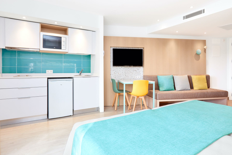 Die Zimmer im Universal Aparthotel Elisa sind geräumig und gut ausgestattet, mit einer Größe von bis zu 40 qm für die Apartments mit einem Schlafzimmer. Alle Zimmer haben eine Küchenzeile und sind mit Flachbildschirm, Föhn, Kaffee-/Teezubereiter, Kühlschrank, Mikrowelle, Satelliten-TV, Schreibtisch, Telefon und Toaster ausgestattet und verfügen über kostenloses WLAN. Zudem sorgt die Klimaanlage und Heizung für eine angenehme Raumtemperatur