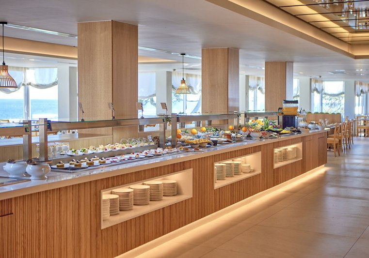 Im Universal Hotel Lido Park & Spa wohnt Ihr auf einer Anhöhe über zwei Sandbuchten und blickt auf Meer und Küstenlinie. Der Weg hinunter führt über Treppen, oben erwartet Euch ein Haus mit klarer Struktur, breiten Sonnenterrassen und Bereichen, die sich sinnvoll verzahnen – von der Lobby bis zum Außenpool. Familien, Strandliebhaber und Erholungssuchende finden hier einen unkomplizierten Rahmen mit Servicepräsenz, ohne Gedränge oder Showeffekte.