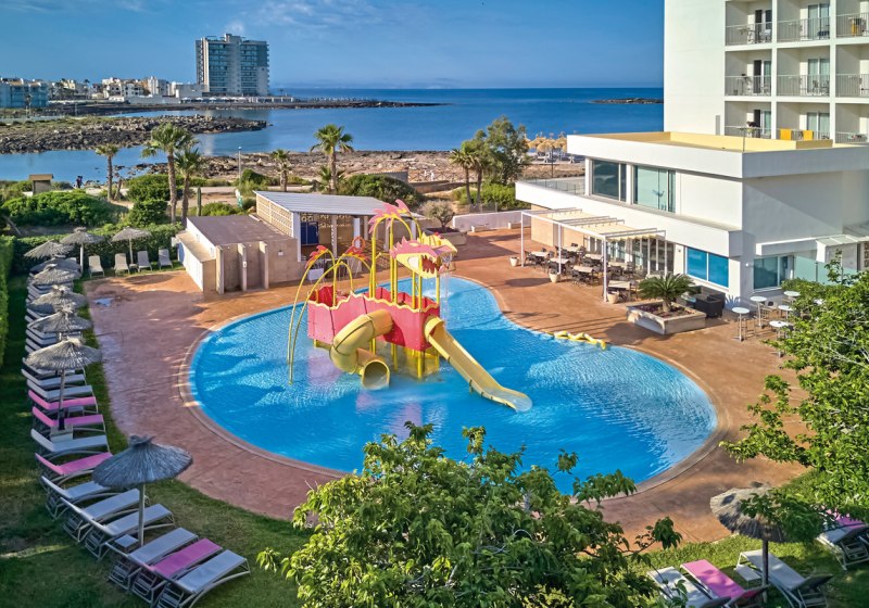 Zimmer mit Balkon oder Terrasse, Suiten mit separatem Schlafzimmer und Meerblick-Optionen geben Struktur und Komfort. Mit Spa, Poolbereichen und Sportangeboten plant Ihr Eure Tage nach Geschmack – lebhaft, erholsam und gut organisiert in den Ferien in Colonia Sant Jordi.