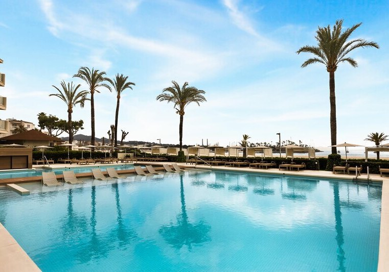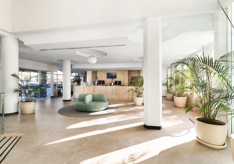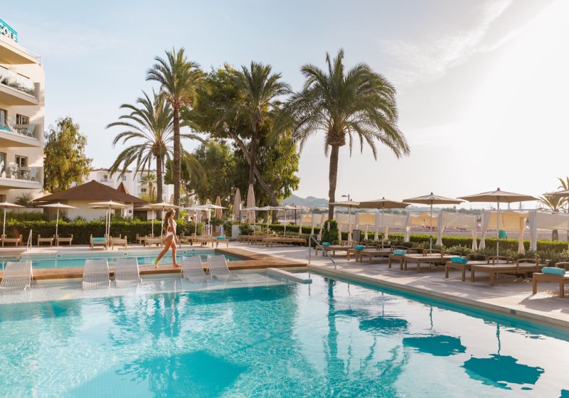 Im VIVA Golf wohnt Ihr direkt am Sandstrand von Alcudia und blickt auf die ruhige Bucht, während der Tag gemächlich beginnt. Das Haus ist Adults-Only ab 18 Jahren, was die Atmosphäre klar definiert: gelassen, fokussiert und ohne Kindertrubel. Ihr trefft hier Strandliebhaber, Radfahrer, Golfspielende und Paare, die Nähe zum Wasser und kurze Wege schätzen. Die öffentlichen Bereiche sind klimatisiert, freundlich organisiert und bieten Euch kurze, logische Wege zwischen Lobby, Garten und Poollandschaft.