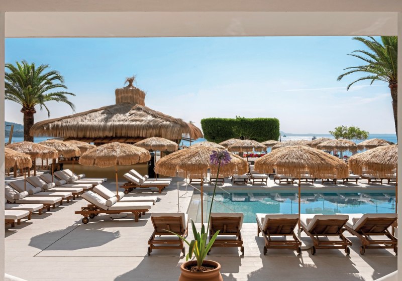 - Zwei Pools: Großzügige Wasserflächen mit Liegen und sonnigen Terrassenflächen.