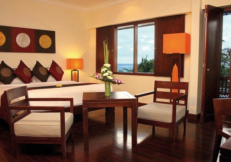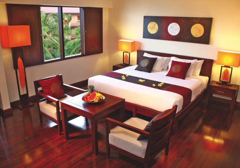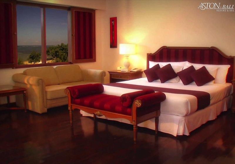 Ihr wohnt in Deluxe-Zimmern, teils mit Garten- oder Meerblick. Auf Bali typisch sind teilweise offen integrierte Badbereiche, die das Raumgefühl erweitern. Meist schlaft Ihr in Queen- oder Kingsize-Betten. Auf dem Balkon oder der Terrasse genießt Ihr Luft und Blick, je nach Lage Richtung Garten, Pool oder Küste.
