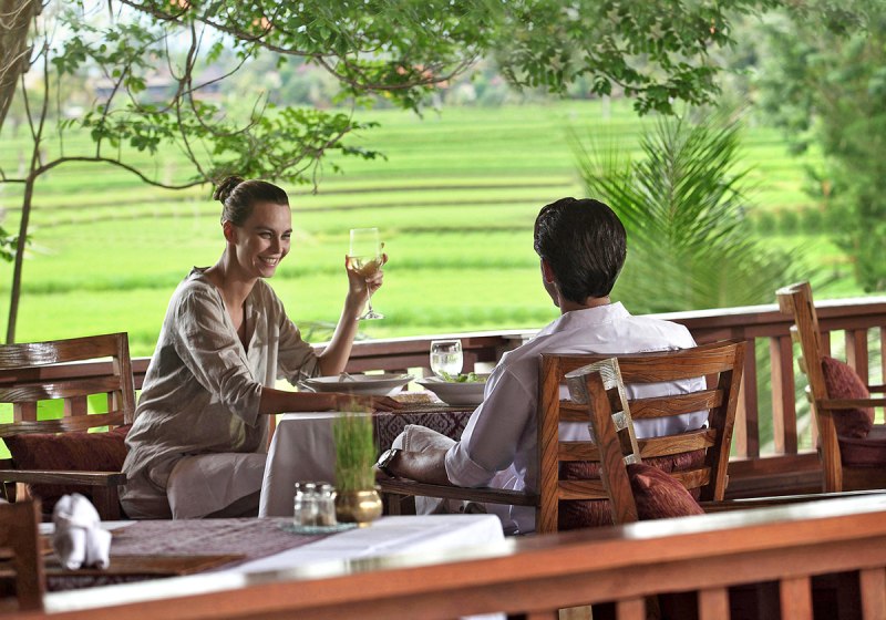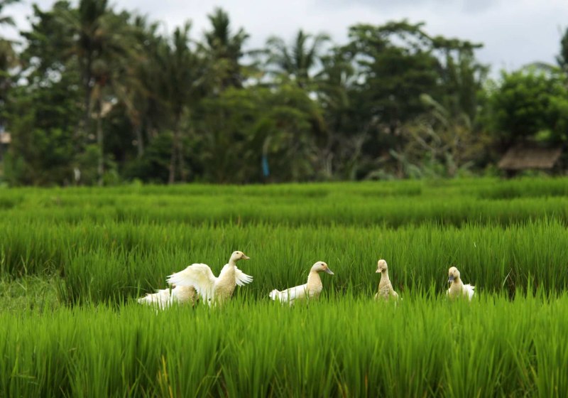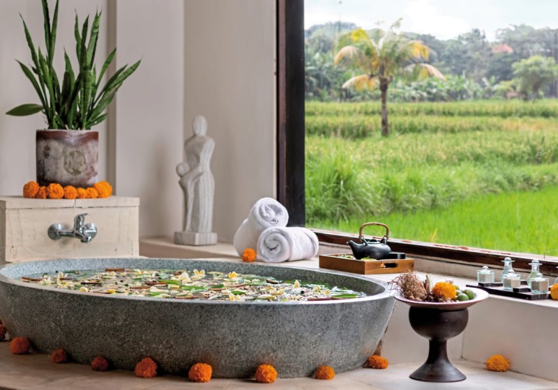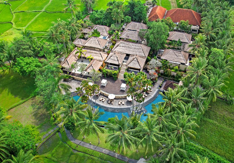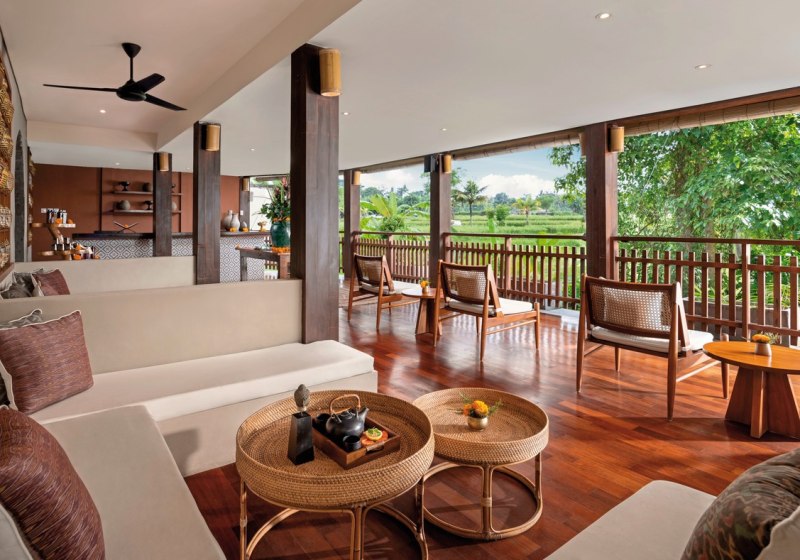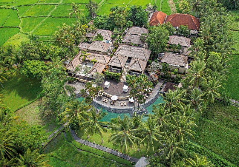 - Reisfeldblick: Ausgewählte Villen öffnen den Blick auf umliegende Reisfelder.