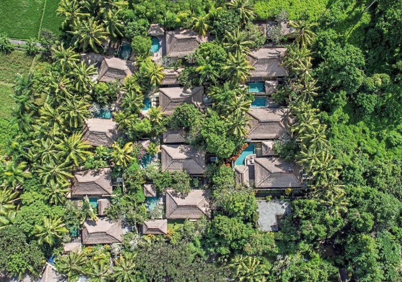 Das Resort liegt nahe Ubud auf Bali, etwa fünf Fahrminuten vom Zentrum mit seinen Sehenswürdigkeiten, Handwerksläden und Märkten entfernt. Vom Flughafen erreicht Ihr das Haus in rund 50 Fahrminuten. Damit bleibt Ihr nah am kulturellen Geschehen, ohne auf Ruhe im grünen Umfeld zu verzichten.