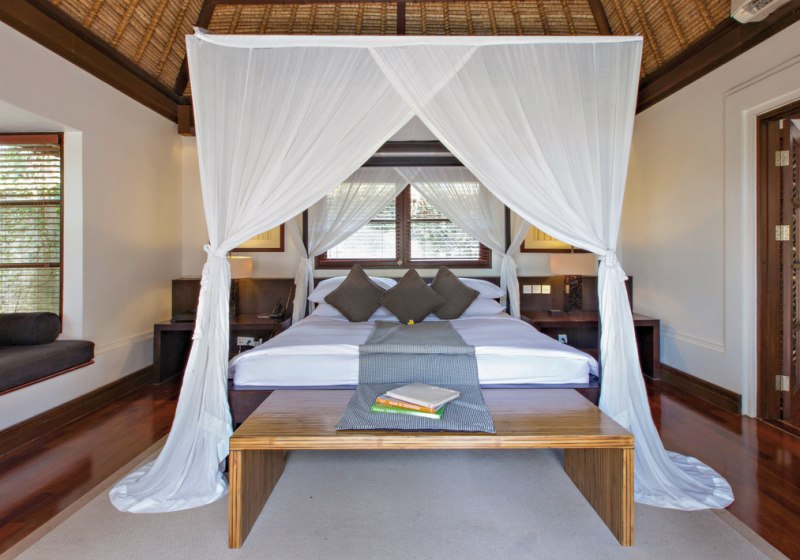 Zur Ausstattung zählen Klimaanlage, Safe, Minibar, Flachbild‑TV, Kochnische mit Kaffee‑/Teezubereiter sowie eine Außendusche. Je nach Lage blickt Ihr in den Garten oder zum eigenen Pool. Der Butlerservice unterstützt nach Bedarf, ohne den privaten Rhythmus zu stören.