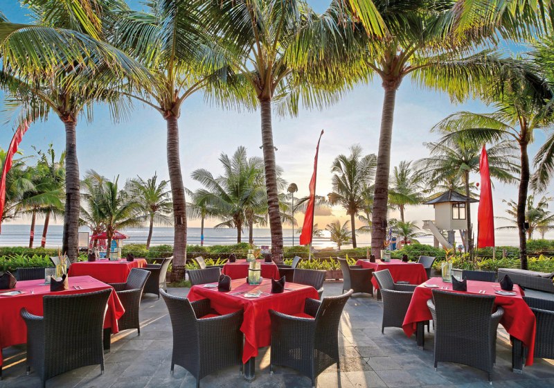 Legian Beach Hotel kombiniert Strandlage ohne Straßenverkehr, Gartenbungalows und zwei Pools mit verlässlichem Service. Kulinarisch wählt Ihr zwischen drei Küchen und verschiedenen Verpflegungsoptionen. Abends geben Livemusik und traditionelle Tänze Takt und Farbe.