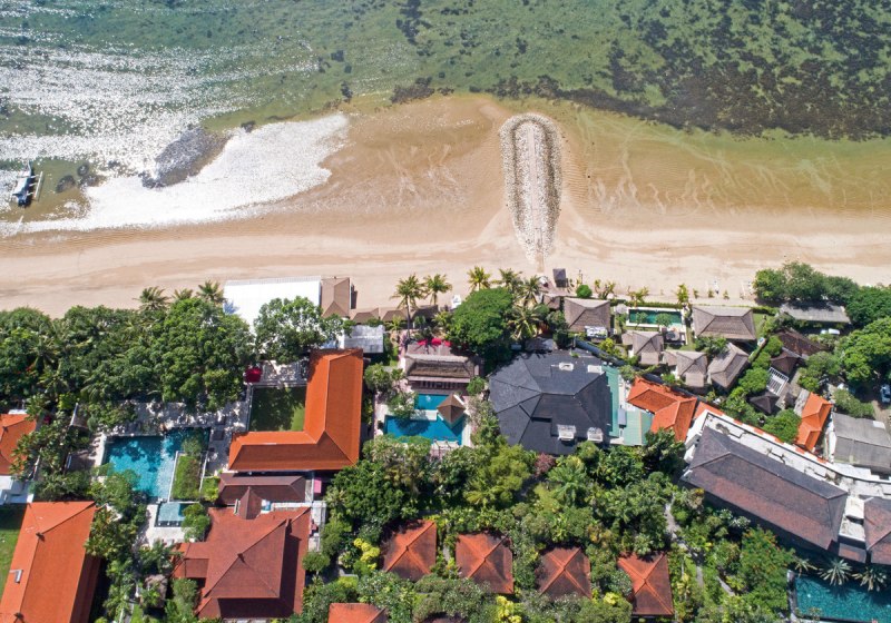 Ihr wohnt in Sanur an der Adresse Jl. Cemara 35, direkt am feinsandigen Strand. Der Weg zum Wasser ist kurz, Liegen und Sonnenschirme stehen am Strand bereit. Zum internationalen Flughafen Denpasar beträgt die Fahrtzeit etwa 20 Minuten – eine komfortable Anreise für entspannte Strandtage ohne lange Transfers.
