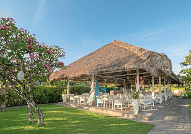 Im SOL Benoa Bali - All Inclusive wohnt Ihr direkt am Sandstrand von Tanjung Benoa – ein Ort, an dem das Meeresrauschen Euren Tag strukturiert und die Wege kurz sind. Die Anlage wirkt überschaubar und angenehm grün, mit einer weitläufigen Poollandschaft und Bereichen zum Zurückziehen. Dank All-Inclusive, kostenlosem WLAN in der gesamten Anlage und mehreren Bars bleibt Ihr flexibel und entspannt. Familien fühlen sich durch Kinderbecken, Spielbereiche und Miniclub gut aufgehoben, Paare schätzen die ruhigen Ecken im Garten.
