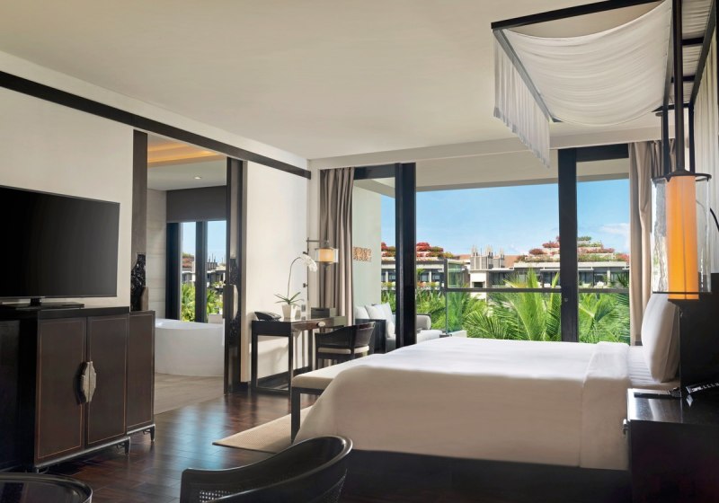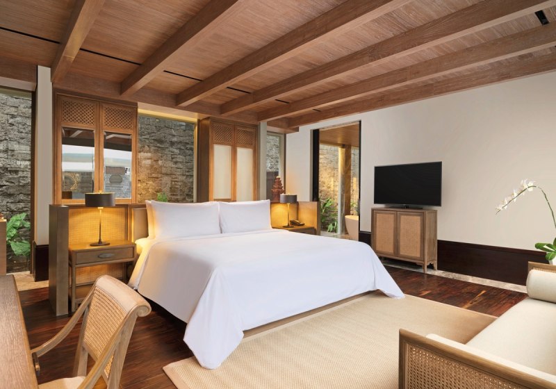 The Apurva Kempinski Bali empfängt Euch direkt am Sandstrand im Süden von Nusa Dua. Das Resort wirkt grosszügig angelegt und verbindet Strandnähe mit üppigen Außenbereichen. Ihr flaniert zwischen Gartenflächen, Terrassen und dem weitläufigen Poolbereich, bevor Ihr Euch am Meer niederlasst. Das Ambiente bleibt entspannt, die Struktur professionell.