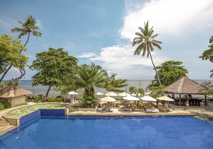 Im The Lovina Bali wohnt Ihr direkt am schwarzen Sandstrand von Lovina. Zwei Pools, viel Platz im Garten und eine ruhige, weitläufige Anlage prägen die Atmosphäre. Ihr startet den Tag mit Blick auf den Sonnenaufgang über dem Meer und plant zwischen Strand, Pool und Aktivitäten Euren Rhythmus. Highlight: Sonnenaufgänge am Strand, klar sichtbar direkt vor der Anlage.