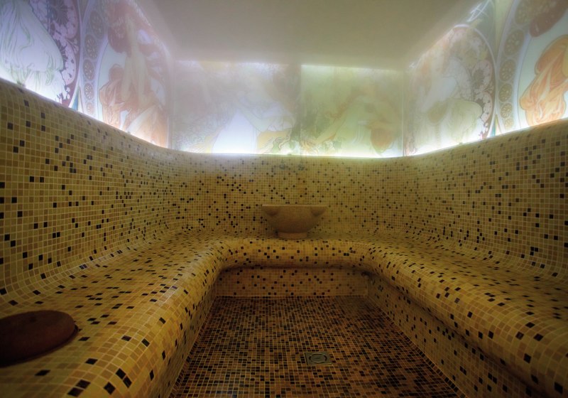 - Sauna: Sauna und Dampfbad setzen klare, klassische Wärmeakzente.