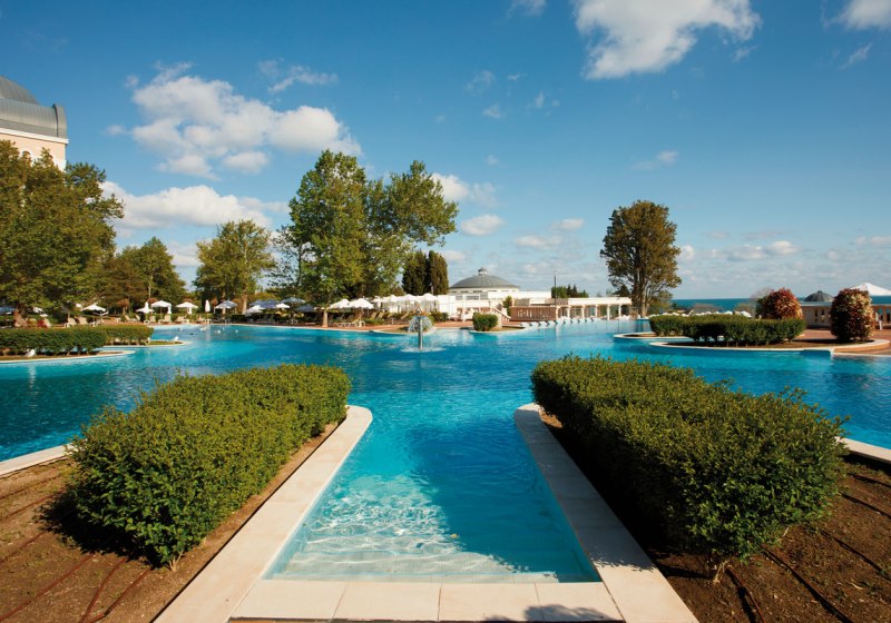 - Pools & Spa: Fünf Außenpools und Spa mit Hallenbad, Sauna und Dampfbad.