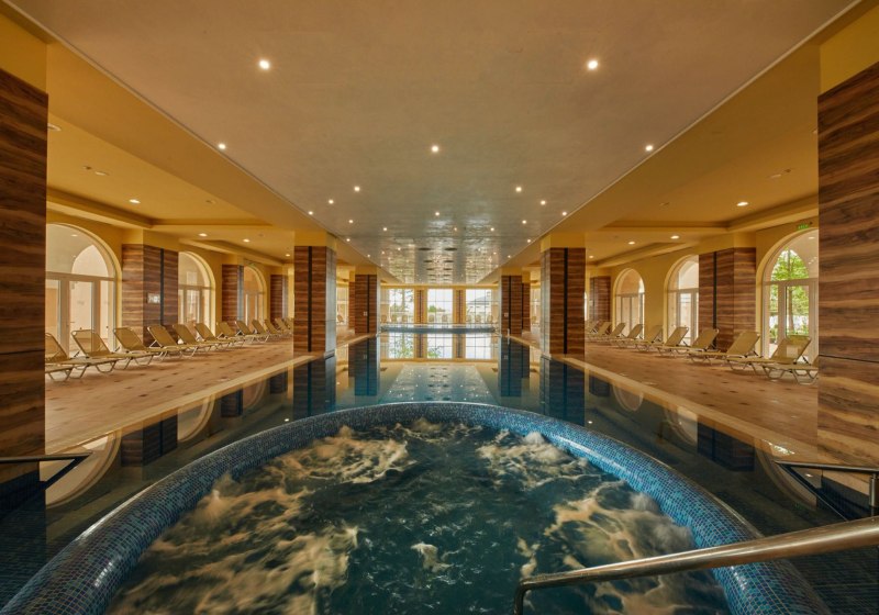- Spa: Hallenbad, Whirlpool und Kinderbereich für wetterunabhängige Erholung.
