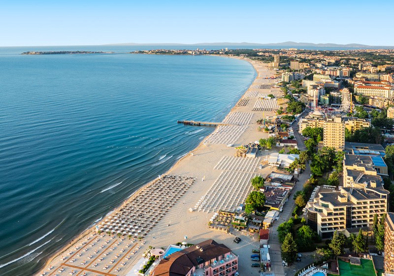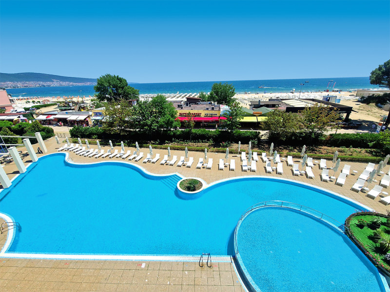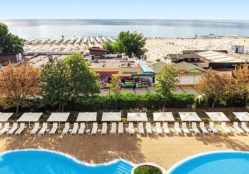 Die Adresse sitzt: zentrale Lage am Sonnenstrand, mit Restaurants, Bars und Einkaufsmöglichkeiten in unmittelbarer Nachbarschaft. Der öffentliche, flach abfallende Sandstrand liegt wenige Schritte entfernt; Sonnenliegen, Sonnenschirme und Badetücher sind am Strand und Pool nach Verfügbarkeit inklusive. Zur Altstadt von Nessebar gelangt Ihr per Wassertaxi – der Anlegesteg befindet sich am Strand direkt vor dem Hotel. Das sorgt für spontane Ausflüge ohne lange Planung.