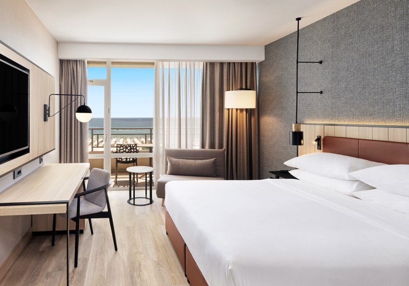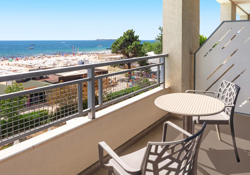Die 359 Zimmer und Suiten über 13 Etagen sind auf erholsamen Schlaf und smarte Details ausgerichtet: Klimaanlage, 55" HD‑TV, Balkon, WLAN inklusive und eine Ausstattung, die den Strandtag ebenso gut vorbereitet wie den Abend. Die Nähe zur Altstadt von Nessebar, bequem per Wassertaxi vom Strandsteg vor dem Hotel, öffnet historische Kulissen und weite Blicke aufs Meer – ein stimmungsvoller Gegenpol zum Trubel des Boulevards.