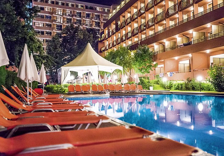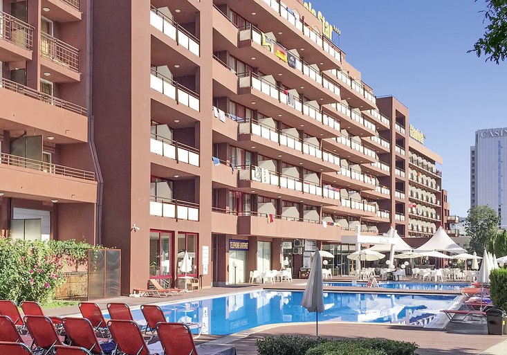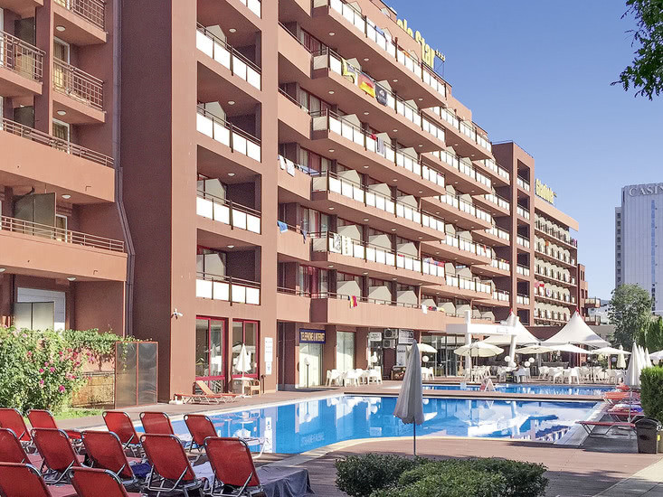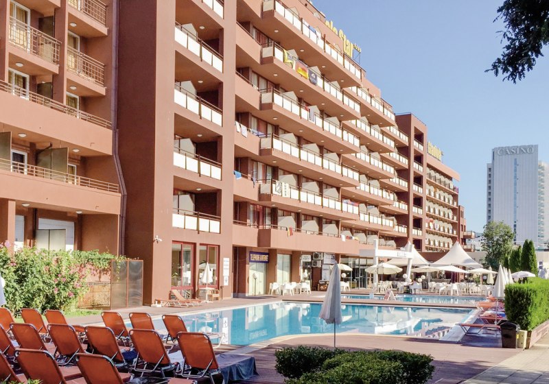Ihr bewegt Euch entspannt zwischen Innen- und Außenbereichen. Das Haus verfügt über sechs Etagen und bildet eine Einheit mit dem Schwesternhotel Gladiola Star. Praktische Services wie Wäscheservice, Wechselstube und Geldautomat runden die Infrastruktur ab; die Rezeption ist laut Angaben rund um die Uhr geöffnet.