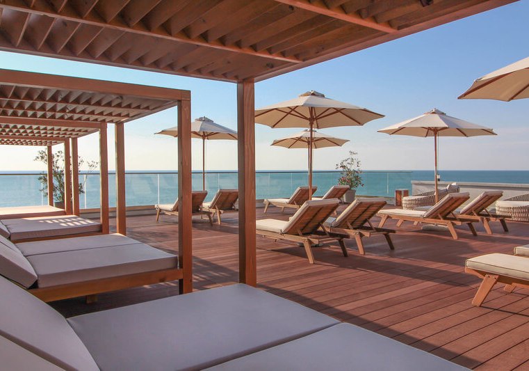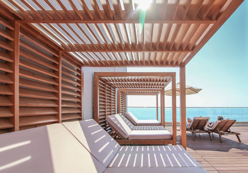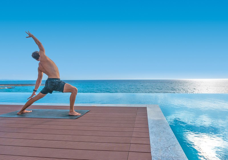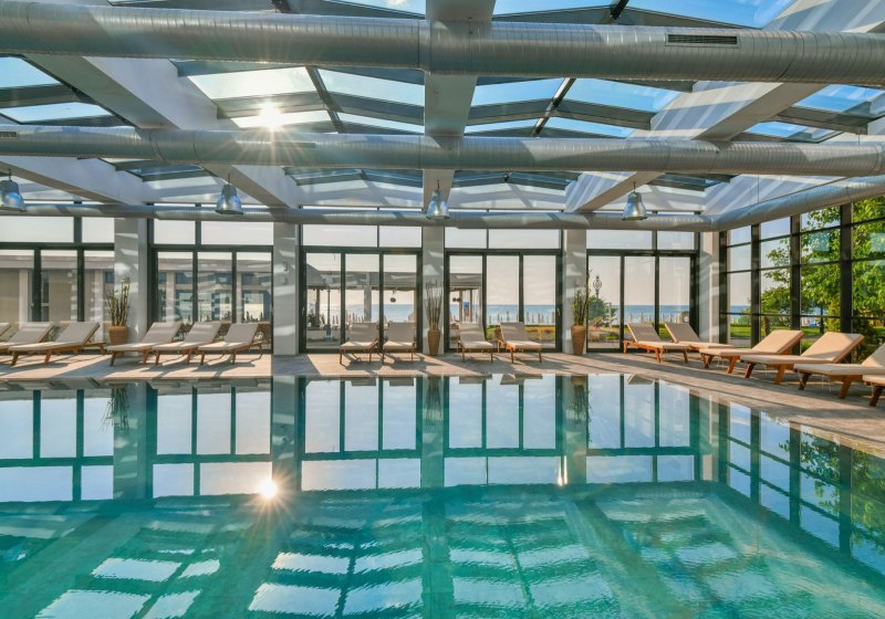 Ergänzend gibt es Physiotherapie, Kosmetik, einen Beautysalon sowie einen Panorama-Fitnessraum mit TechnoGym/Kinesis und eigenen Kursraum. Das Gesundheitsrestaurant fügt sich stimmig in das Konzept. Highlight: Vier Etagen Spa mit Meerblick-Hallenbad für wetterunabhängige Auszeiten.