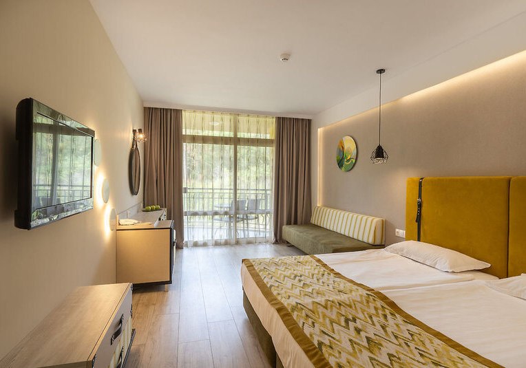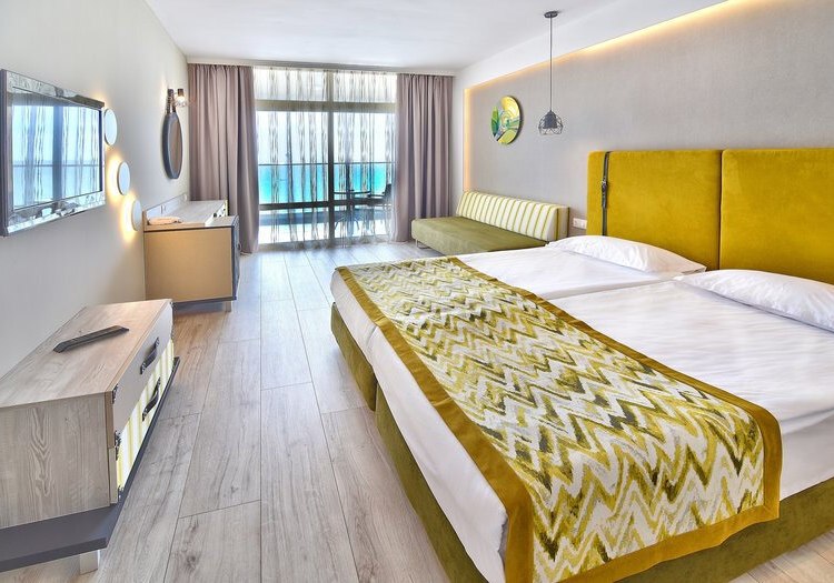 Ihr wohnt am Goldstrand in Bulgarien, direkt an der Promenade, die den flach abfallenden Strand säumt. Der Yachthafen liegt nur wenige Meter entfernt, das Zentrum des Goldstrands erreicht Ihr nach etwa 1,5 Kilometern. Nebenan befindet sich das Schwesternhotel Sentido Marea als zusätzlicher Orientierungspunkt.