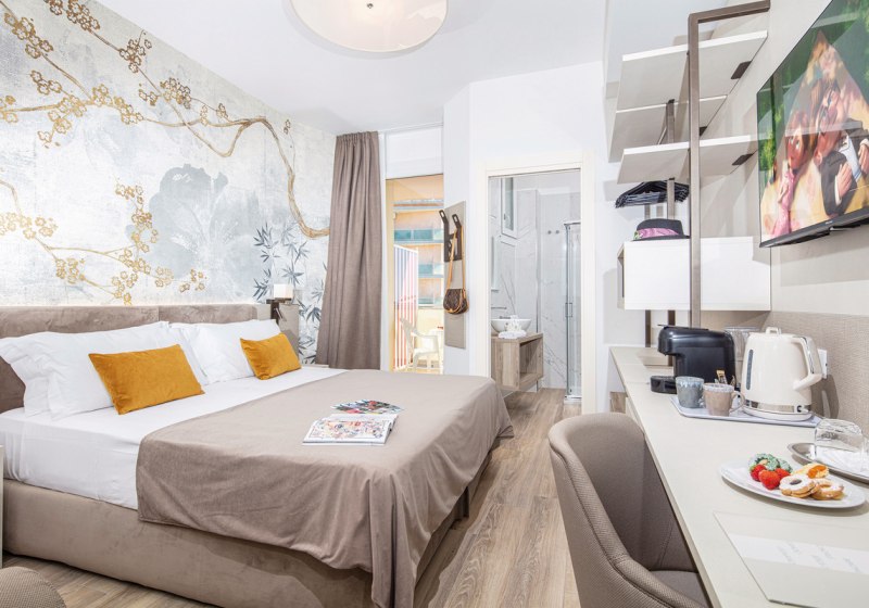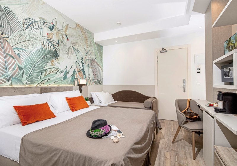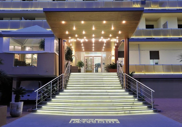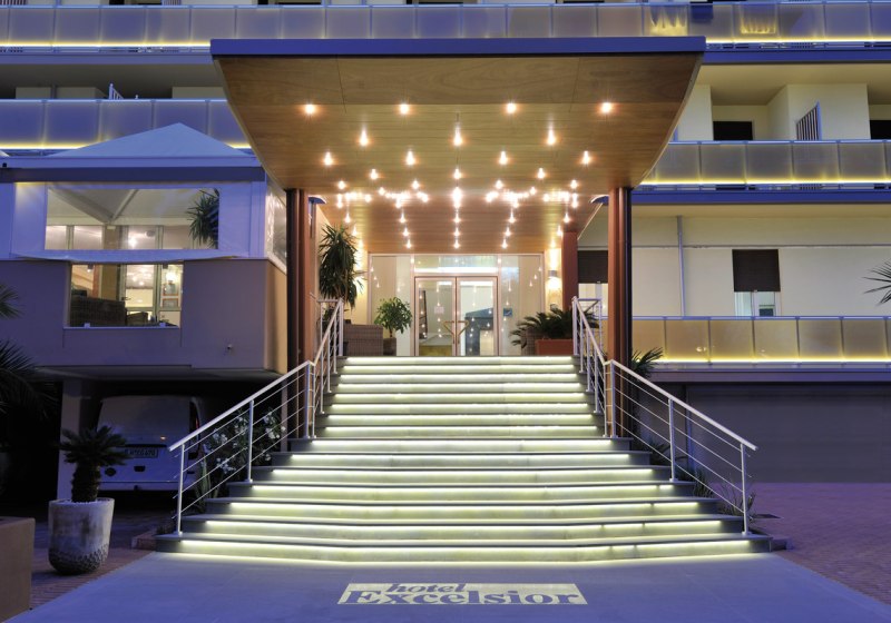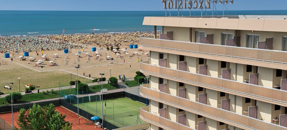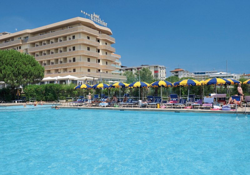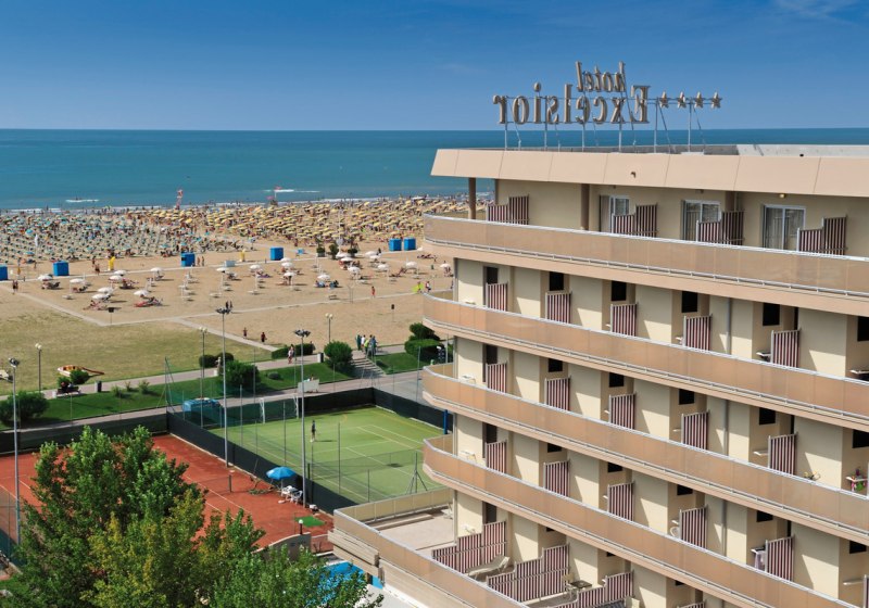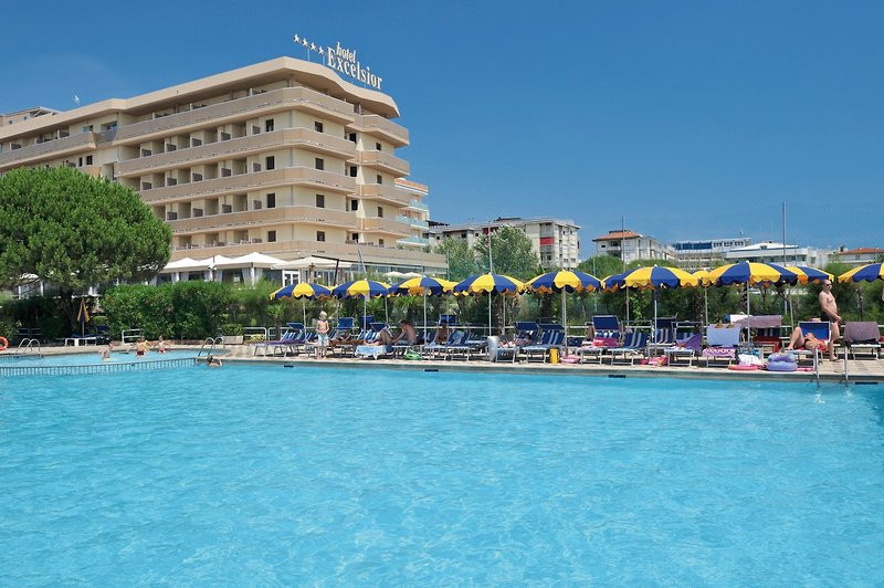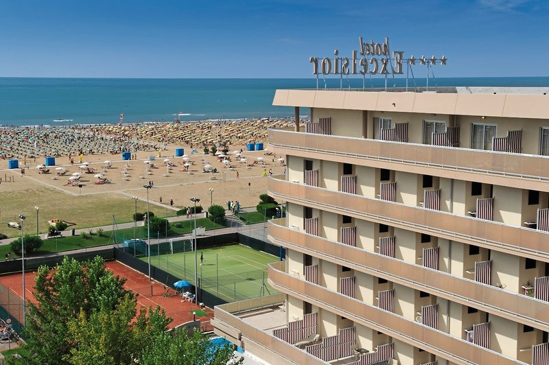 Im Excelsior erwartet Euch ein klar strukturiertes Strandhotel mit direkter Lage am Meer und kurzer Distanz zum Ortszentrum. Ihr bewegt Euch zwischen Strand, Poolbereichen und den kompakten Gemeinschaftszonen mit wenigen Schritten. Familien profitieren von Spielplatz, Spielzimmer und Miniclub, Paare schätzen den unkomplizierten Zugang zum Strand und die ruhige Basis für entspannte Tage.