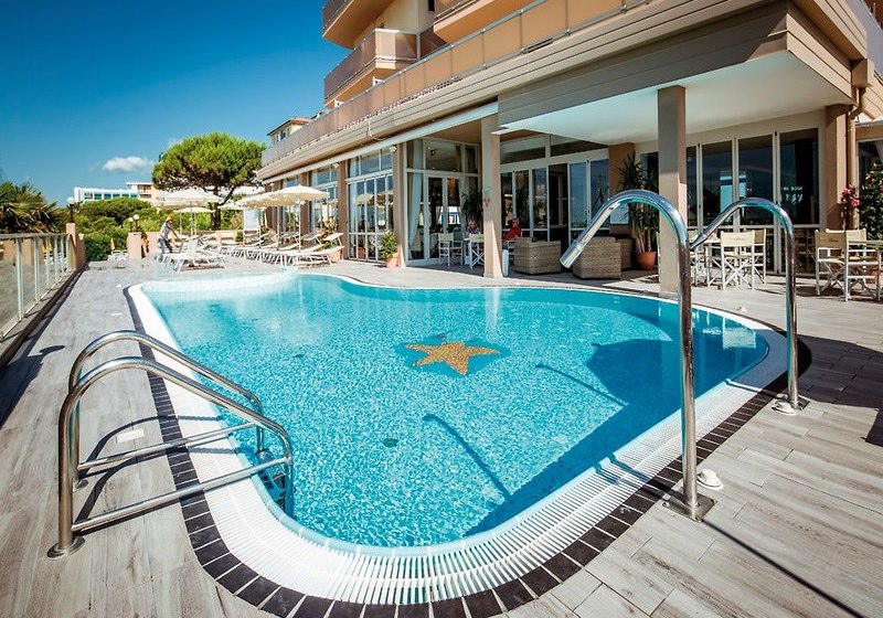 Direkt am Sandstrand von Bibione kombiniert das Excelsior kurze Wege, klare Strukturen und eine familienfreundliche Ausstattung. Pools, Kinderpool und Whirlpools rahmen Eure Tage, während Restaurant, Bar und Poolbar den kulinarischen Rahmen setzen.