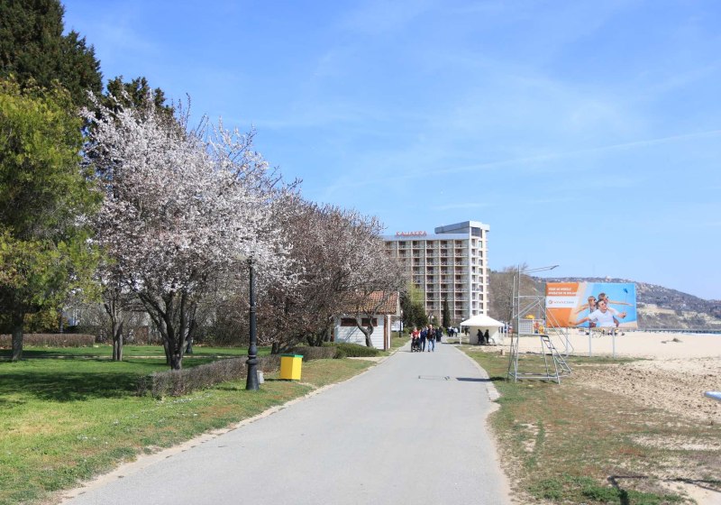 Ihr wohnt in Albena, Bulgarien, direkt am Sandstrand. Zwischen Hotel und Wasser liegt die Uferpromenade, ideal für Spaziergänge in beide Richtungen. Die Umgebung wirkt maritim und offen, Meeresbrise inklusive. In unmittelbarer Nähe befindet sich der Nationalpark Baltata – ein natürlicher Kontrast zum Strand, der die Kulisse abwechslungsreich macht. Highlight: Strandnah und naturverbunden, Promenade vor der Tür.