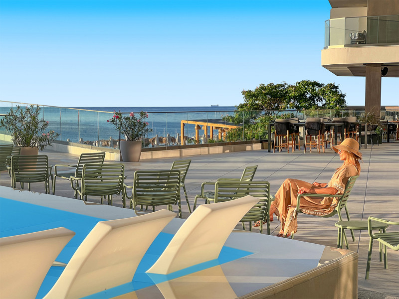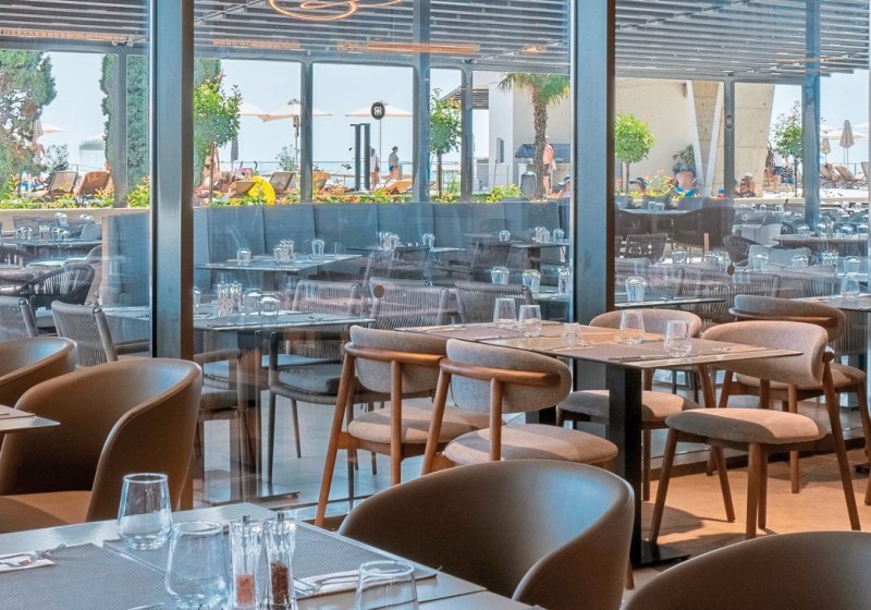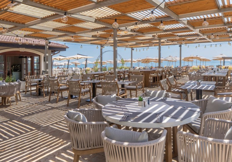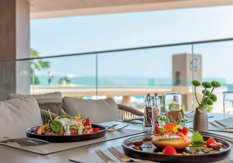 Kulinarik ist im GRIFID Noa breit ausgelegt: Zwei Hauptrestaurants mit Außenterrassen bieten viel Raum und flexible Zeitslots; dazu kommen fünf À-la-carte-Restaurants für abwechslungsreiche Abende. Die Bars sind präzise positioniert – Lobbybar 24/7, Sky-Bar (16+), Cigar-Bar (16+), Strand- und Poolbar sowie eine Champagner-/Sekt-Bar. Highlight: Beach-Club ab 16 mit mediterraner Küche und Pool als fokussierter Treffpunkt.