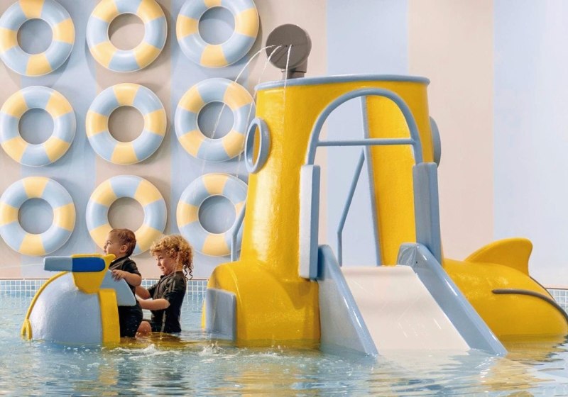- Wasserwelten: Außenpools, Kinderpool mit Rutschen und Sonnenterrassen.