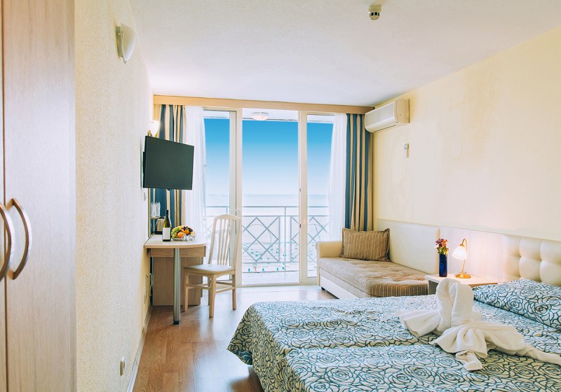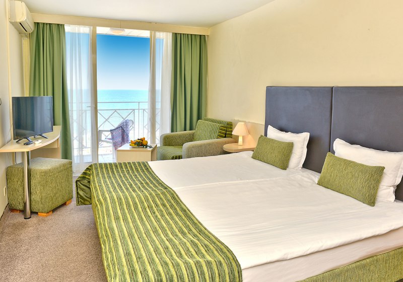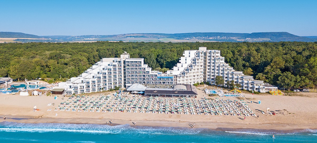 Im Hotel Mura wohnt Ihr direkt am feinsandigen Strand von Albena – mit freiem Blick auf Meer oder Park vom eigenen Balkon. Neben den Hotels Slavuna und Gergana gelegen, verbindet das Haus die Ruhe einer Strandlage mit kurzen Wegen. Highlight: Direkte Strandlage am Naturschutzgebiet, mit kurzen Wegen ins Zentrum.