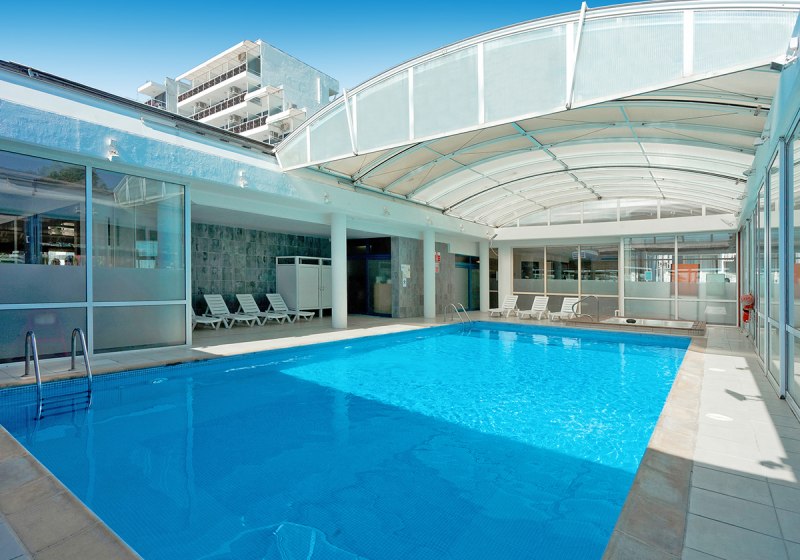 - Poolbereich: Außenpools, Kinderbecken und Sonnenterrassen mit Liegen.