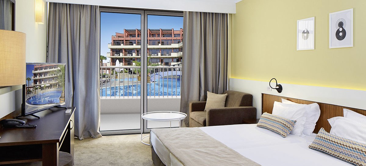 Familien finden Miniclub und Minidisco, Aktive schließen sich Aerobic, Wassergymnastik, Yoga oder Volleyball an. Studios und Appartements ohne Kitchenette sowie Doppelzimmer decken unterschiedliche Bedürfnisse ab, teils mit separatem Schlafraum. Wi‑Fi im gesamten Hotel, 24‑Stunden‑Rezeption, drei Aufzüge, Mini‑Markt und Friseur erleichtern den Alltag. Sonnenliegen und Schirme stehen am Pool und am Strandabschnitt bereit; kleine Hunde bis 5 kg sind auf Anfrage erlaubt. Highlight: Beheiztes Hallenbad verlängert Eure Strandzeit in die kühleren Tage.