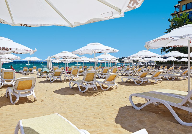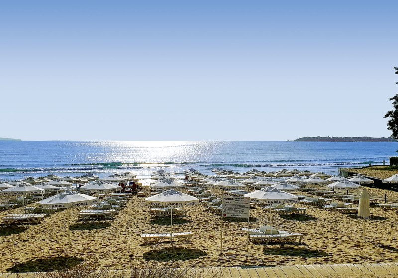 Hotel Nobel kombiniert eine ruhige Lage am Dünenrand mit verlässlicher Anbindung: ca. 800 m bis zum Strand und 2,5 km nach Nessebar sowie ins Zentrum von Sonnenstrand. Der hoteleigene Strandabschnitt, Pools innen und außen und strukturierte Animation schaffen klare Tagesabläufe zwischen Aktivität und Erholung.