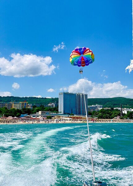 Ihr wohnt am Goldstrand in Bulgarien, zentral und nur durch eine Straße vom öffentlichen Sandstrand getrennt. Der Zugang zum Meer liegt etwa 20 Meter entfernt, das Touristenzentrum erreicht Ihr nach rund 100 Metern. Bis nach Varna sind es ungefähr 17 Kilometer.