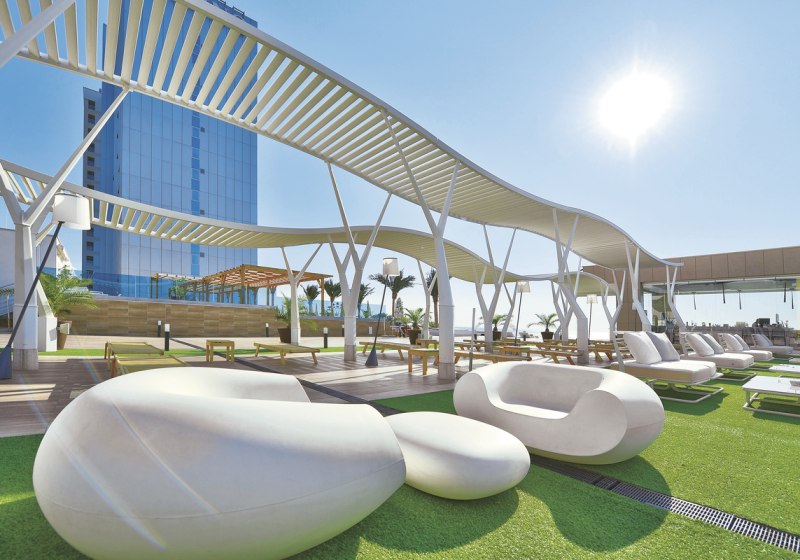 Auf der Panorama-Sonnenterrasse liegt der Infinity-Außenpool mit Kinderbereich. Liegestühle, Sonnenschirme und Badetücher sind vorgesehen. Zusätzlich findet Ihr Friseur, Souvenirshops, Geldautomat, Arztservice, Parkplatz und Garage sowie hoteleigenen Shuttleservice und Fahrradvermietung.
