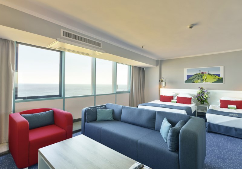 • Klimaanlage • Balkon (je nach Zimmerkategorie) • Haartrockner • Sitzecke (je nach Zimmerkategorie) • Minikühlschrank • Minibar • Telefon • Safe • Meerblick (je nach Zimmerkategorie) • Schlafsofa • Kaffee-/Teezubereiter • Fernseher (Sat-TV) • rollstuhlgerechte Zimmer (auf Anfrage) • WiFi (kostenfrei) • Gartenblick • Parkblick • Strandblick • Wasserkocher • Terrasse