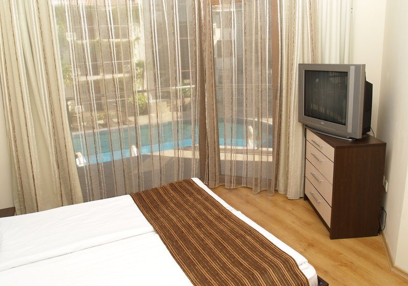 Ihr wohnt nur etwa 30 Meter vom Sandstrand entfernt. Burgas erreicht Ihr nach rund 30 Kilometern, der Flughafen Burgas (BOJ) liegt bei etwa 44 Kilometern. Ein Wald beginnt in ungefähr 20 Metern, und zur nächsten ÖPNV-Haltestelle sind es rund 10 Meter. Das Hotel liegt an der Hauptstraße, was eine direkte Anbindung unterstützt.